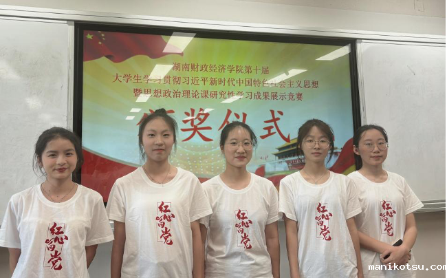 “接天莲叶碧似霞,乡村振兴显风华”一句话让沉寂的现场活跃起来,开启了一场准备已久的大学生思政研究性学习成果展示。备赛期间,在马克思主义学院邓艳君院长、肖彬副院长的悉心指导下,五名学生积极准备。写演讲稿,制作PPT,反复修改,每个人都用心准备自己负责的内容。团队成员互相鼓励彼此,一遍又一遍地排练展示,最终“功夫不负有心人”,在现场决赛中斩获特等奖,将代表湖南财政经济学院参加湖南省赛。
