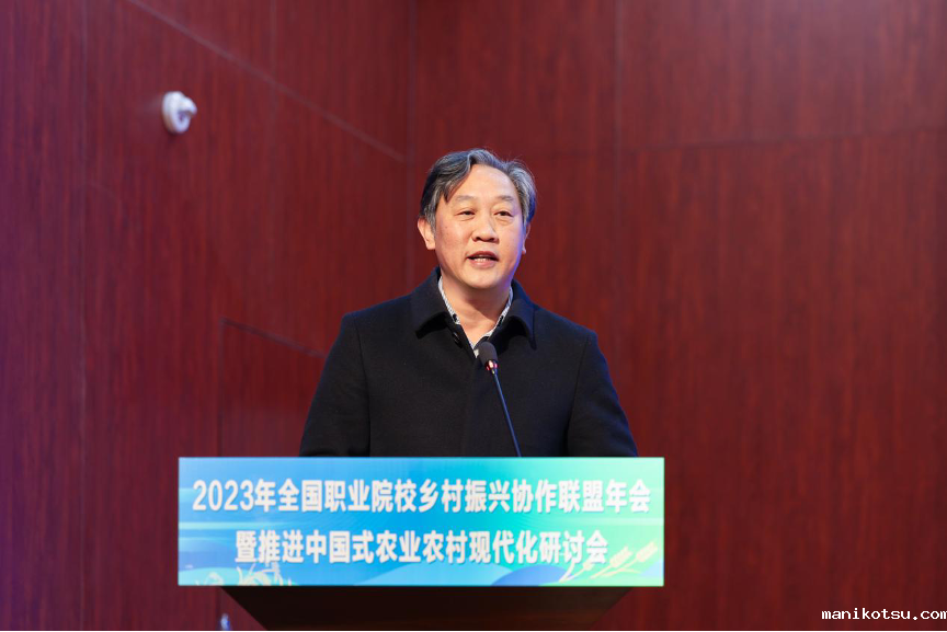 全国职业院校乡村振兴协作联盟理事长、韦德com党委书记周忠新为大会致辞,提出农业强国的号角已经吹响,站在新起点新征程上,联盟将建好平台、顺势而为,服务农业提质。大力推动农村电商、乡村旅游、农耕体验等新产业新业态的发展,搭建起产教融合的“立交桥”,为农业现代化贡献力量;将科学统筹、加强合作,服务农村建设。积极推动校际联动、校政联动、校企协联动,科学统筹推进宜居宜业和美乡村建设,助力农民群众共享乡村发展的成果;将培育人才、增强本领,服务农民发展。通过职业教育与培训方式,解决乡村新型工匠培养的“最后一公里”问题,培养现代化新农民和更多职业农民,以高质量的职业教育与培训来推动实现中国式农民现代化。