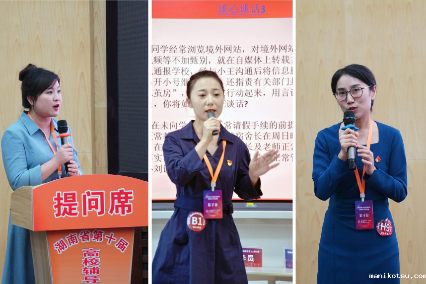 经过复赛角逐,本专科各20所院校,共72名辅导员在决赛中合并竞技。通过“基础知识测试”“谈心谈话”“案例研讨”三个阶段的激烈比拼,全面考察辅导员综合素质,最终湖南商务职院曹璐以高职高专组第1名的佳绩获大赛特等奖,夏瑞霞获二等奖,团体位列第3,获得季军。