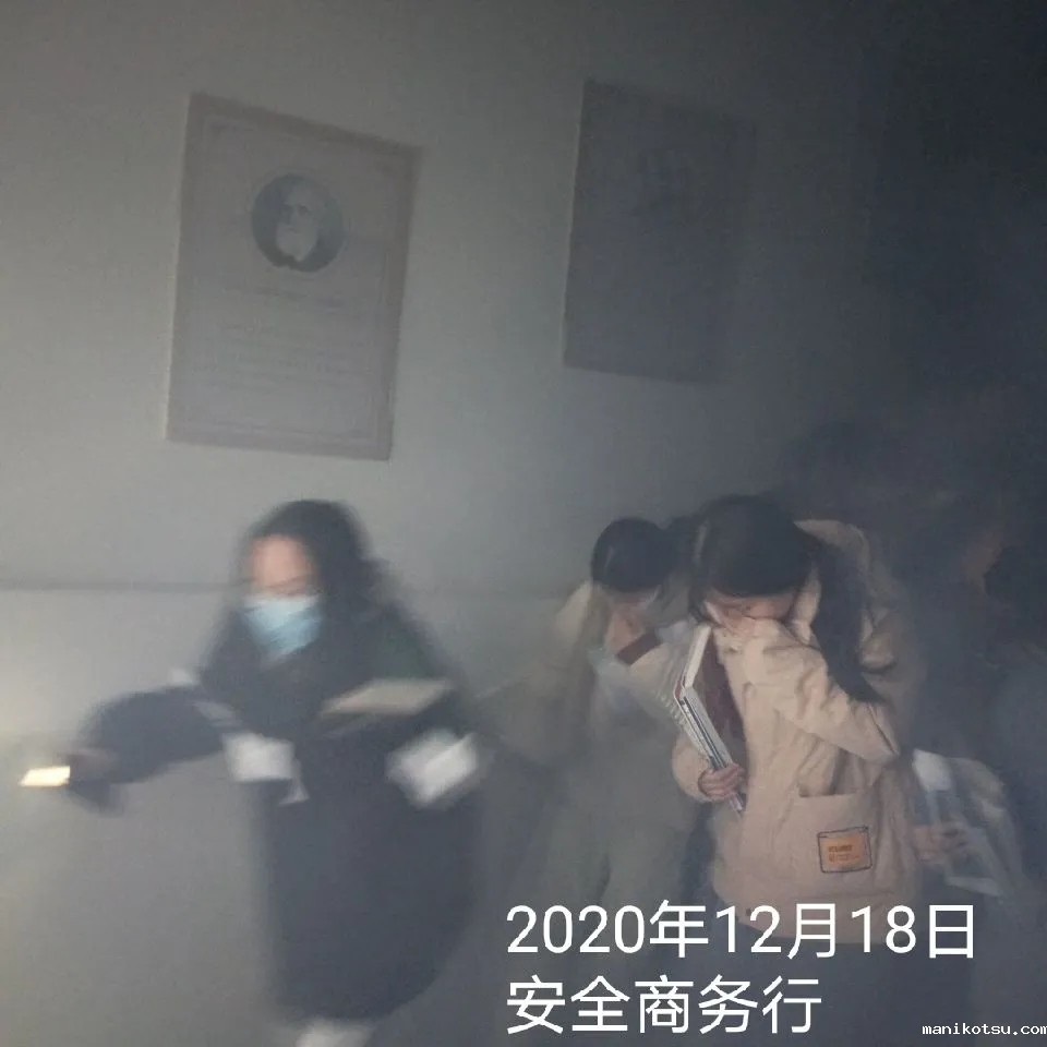 12月18日清晨,大一新生都在自习时,拉响了演练警报声并模拟真实场景,放了烟雾弹提醒大家火灾的来临。