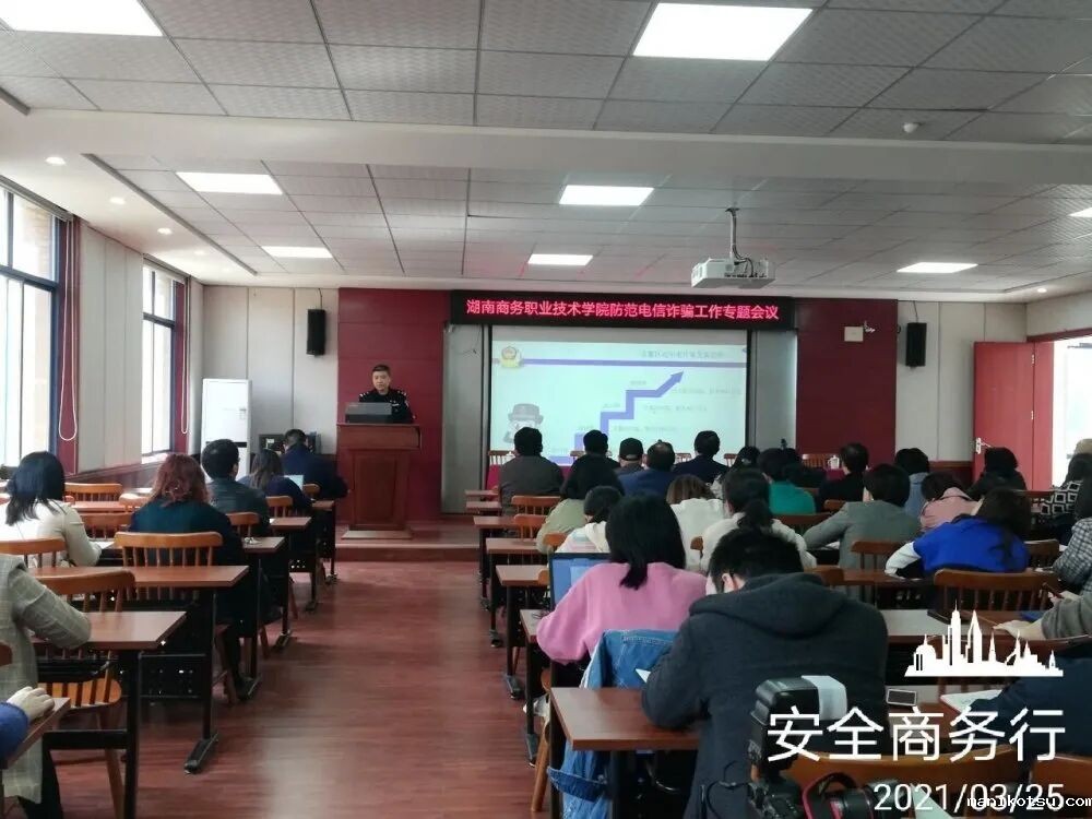 3月25日我校特邀请岳麓公安分局副所长黄闽来我校为辅导员老师开展宣传防电信诈骗安全知识讲座。