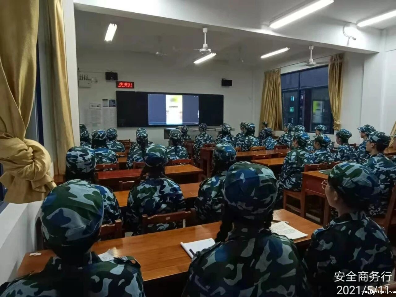 2021年5月11日晚,各连连长组织连队在责任教室观看关于电信诈骗题材的视频。