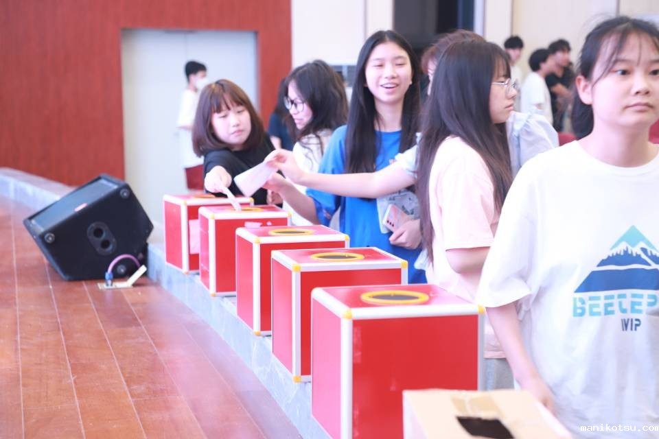 6部安全微电影全部播放完毕后,观众主观投票,投票结束后,由校自治委员会主席侯骏午、校纪检部部长潘劲松后台计票。最后由学生治保部部长汪晔烨宣布获奖作品。