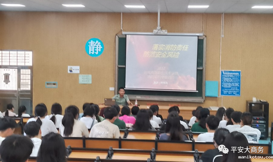 在此次消防讲座中,杨东升教官利用PPT结合生活中发生的灾难事故,生动形象地解说了火灾带来的危害性和掌握自救能力的重要性。
