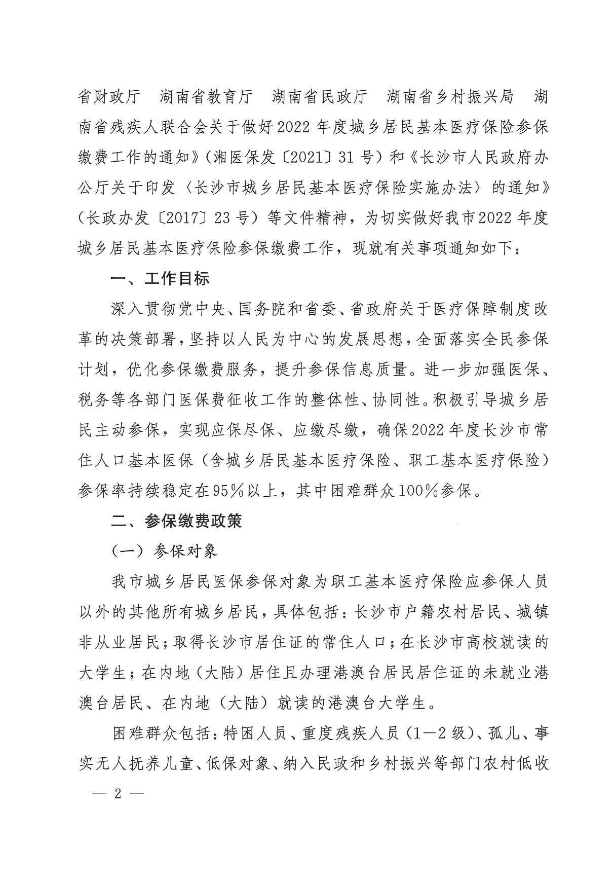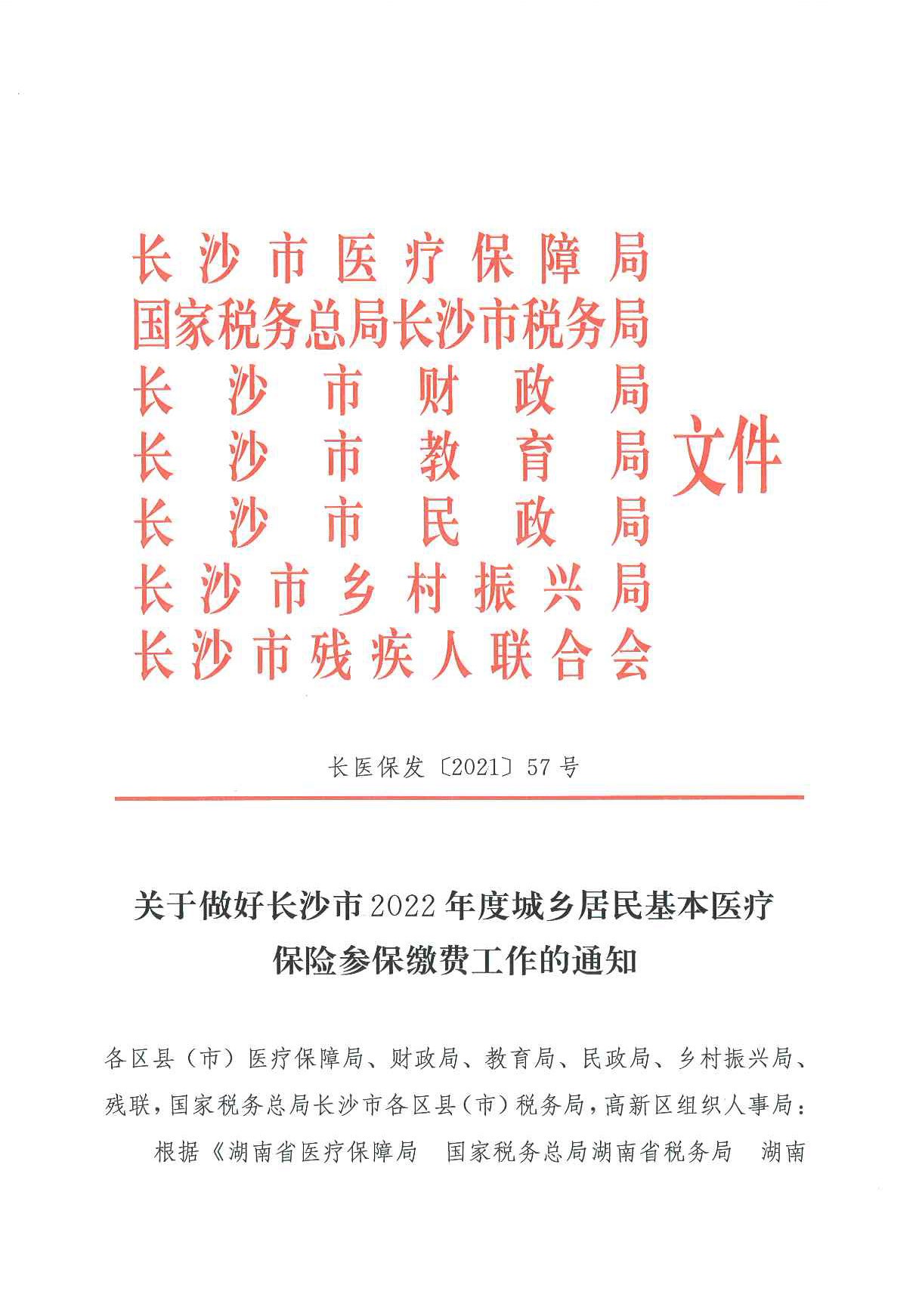 长医保发〔2021〕57号 关于做好长沙市2022年度城乡居民基本医疗保险参保缴费工作的通知