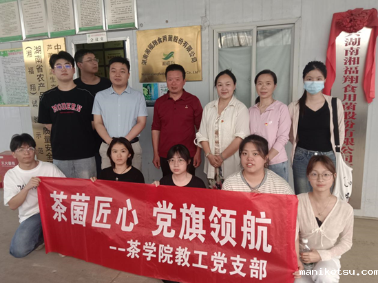 为深入贯彻党的二十大精神,推动党建与学科发展、产教融合深度融合,5月12日下午,茶学院教工党支部以“茶菌匠心 党旗领航”为行动指南,由党支部书记廖伟、副书记冯湘及党员教师肖鹏飞带队,组织“菌趣乐园”全体验工坊创业团队邱梦圆、董海芸、唐昱、杨明辉、常康乐、陈璐、曹丽园、吴虹慧等8位同学,赴湖南湘福翔食用菌股份有限公司开展专题调研,探索“党建+产业+育人”协同发展新路径。