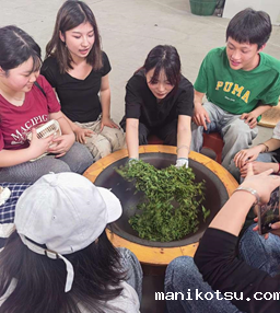 首先采摘是制茶的第一步,指尖上的精准把控。踏入茶园,满目翠绿的茶树间,指导老师示范"一芽一叶"采摘标准——用拇指和食指轻提芽叶,避免指甲损伤。实际操作时,烈日下穿梭茶树丛,看似简单的动作需全神贯注,既要快速识别鲜嫩芽叶,又要保持手法轻柔准确。每片茶芽的采摘,都是对耐心与技巧的双重考验,直接影响茶叶品质基础。