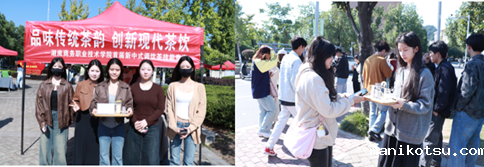 此外,此次活动邀请了校企合作单位的茶饮品牌茶守艺联动宣传,活动现场有茶守艺品牌产品展示、免费赠饮和优惠券发放等活动。同时,我校茶艺队也在此次活动中展露风采。茶艺队负责了校园内茶席设计与美学展示,四个不同风格的茶席台上由茶艺师们演示中国工夫茶艺冲泡,邀请校园内爱茶人士共饮一杯功夫茶。