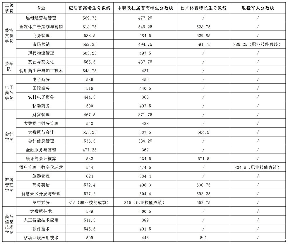 2023年单招分数线