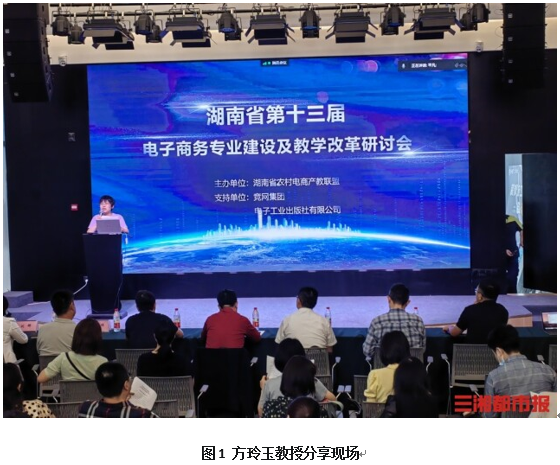 (通讯员 董慧敏)2022年5月26日,湖南省第13届电子商务专业建设及教学改革研讨会在湖南竞网集团举行。湖南省农村电子商务产教联盟中38家中高职院校和相关企业代表围绕以产导学、以学助产,深化农村电子商务专业建设,打造高质量农村电商产业人才,助推农村电子商务产业的发展,落实国家乡村振兴战略和湖南省“三高四新”战略展开探讨。我院是联盟副事长单位,电子商务领军专家方玲玉教授、电子商务学院曾鸣院长作为会议特邀专家出席,并作了主题分享。