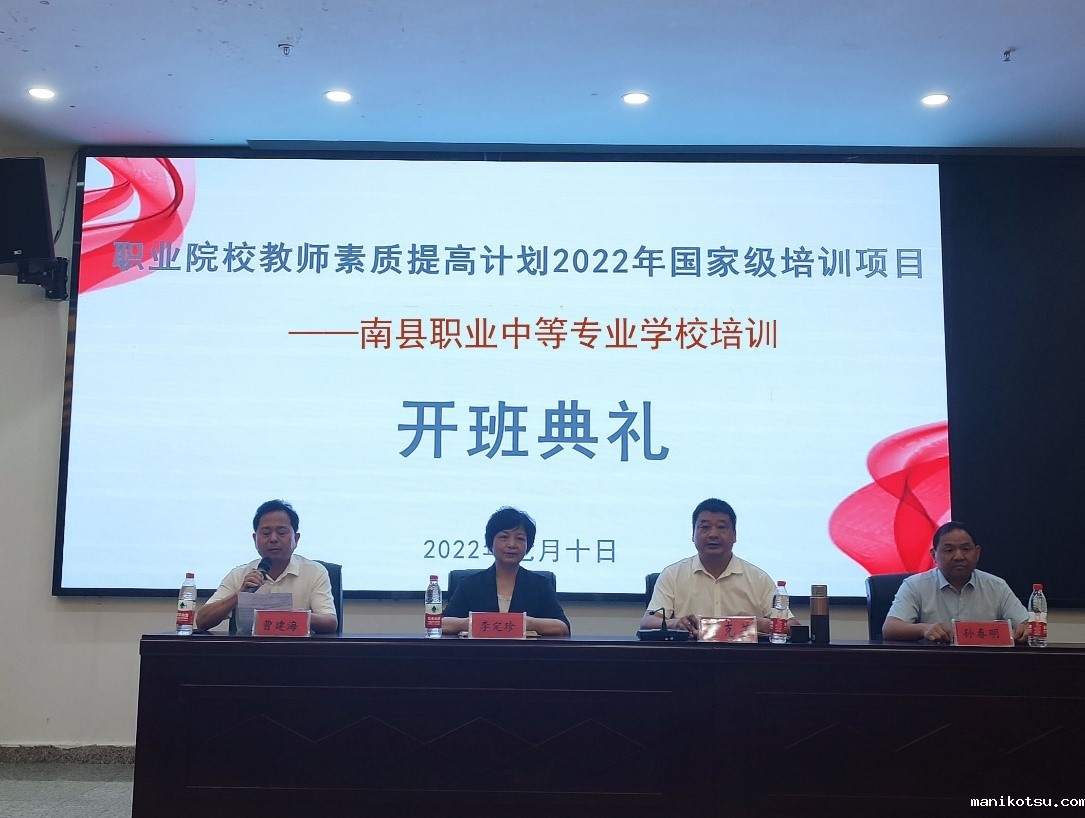 7月10日上午,职业院校教师教育教学素质提高计划2022年国家级培训项目——我院送培南县职业中等专业学校培训班在南县职业中等专业学校行政楼一楼教师会议室正式开班。韦德com院长李定珍、电子商务学院党总支书记孙春明、电子商务学院副院长袁鑫、电子商务学院党总支副书记刘明浩、班级管理员周训菊、南县职业中等专业学校校长邓克芳、副校长曹建海、副校长郭创乾、教学科主任蔡春辉,以及30名学员出席开班典礼。南县职业中等专业学校副校长曹建海主持开班仪式。
