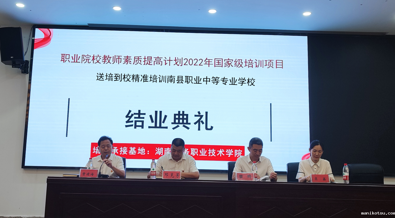 2022年7月19日,职业院校教师教育教学素质提高计划2022年国家级项目——送培到校精准培训南县职业中等专业学校培训班举行结业典礼。韦德com电子商务学院院长曾鸣、副院长袁鑫、南县职业中等专业学校党总支书记、校长邓克芳、副校长曹建海、副校长郭创乾、教学科主任蔡春辉及全体参训学员出席了结业典礼。南县职业中等专业学校副校长曹建海主持结业仪式。