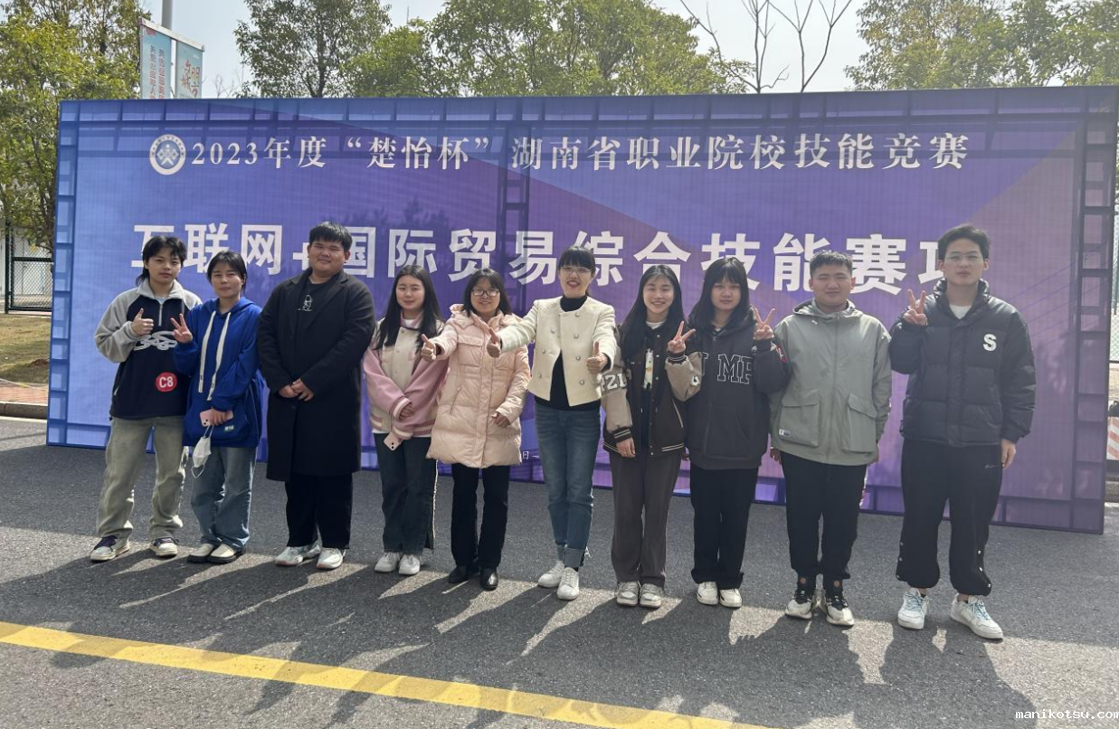 3月2日至4日,由湖南省教育厅、湖南省人力资源和社会保障厅主办,湖南机电职业技术学院承办的2023年度“楚怡杯”湖南省职业院校技能竞赛圆满收官。在此次比赛中,由我院倪莹莹、谢丽云、张丽莉、熊卉老师带队,来自国际商务专业21国商1班的彭琪、杨张知幸、胡婷,21国商2班的罗颖凡、隆清逊,21国商3班的姜俊、唐钰琪、奠菀茹八位同学组成的互联网+国际贸易综合技能团队,经过激烈角逐,从41支参赛队伍164名参赛选手中脱颖而出,荣获“互联网+国际贸易综合技能赛项”二等奖一项、三等项一项。