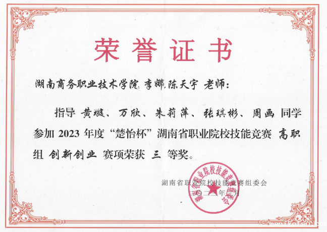 喜报:“创新创业赛项”获湖南省三等奖一项