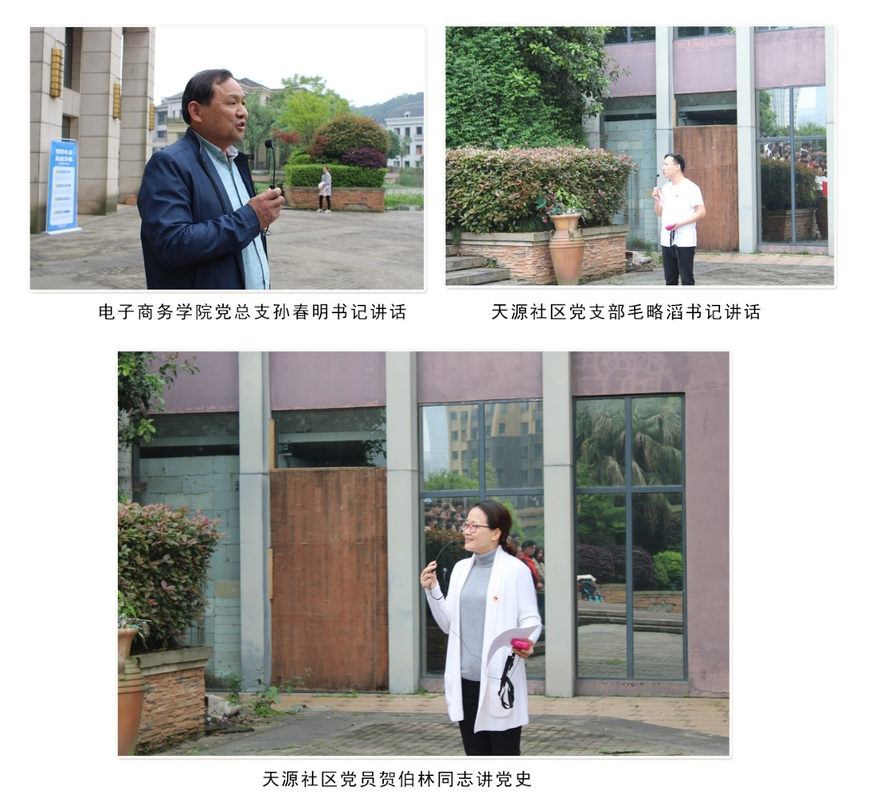 天源社区党员贺伯林同志结合自身入党成长经历,围绕党从哪里来、党是干什么的、党的宗旨和目标等内容,与大家一起重温了祖国在近三十年的重大事件和取得的辉煌成绩,她用一个个生动的党史故事和亲身经历,向大家形象地诠释了一名共产党员应该具备的高贵品质、光荣使命与责任。电商学院学生党员匡瑞明同学借着这次活动的机会,勇敢地走上街头,为过往路人讲述中国共产党成立百年来的故事,并真诚邀请他们为中国共产党建党一百周年献上自己真挚的祝福。