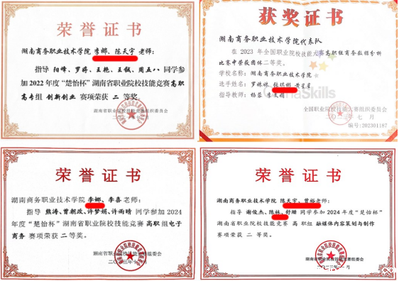 图6 专业教师及学生团队(红线标出)多次荣获全国及湖南省职业院校技能竞赛奖项