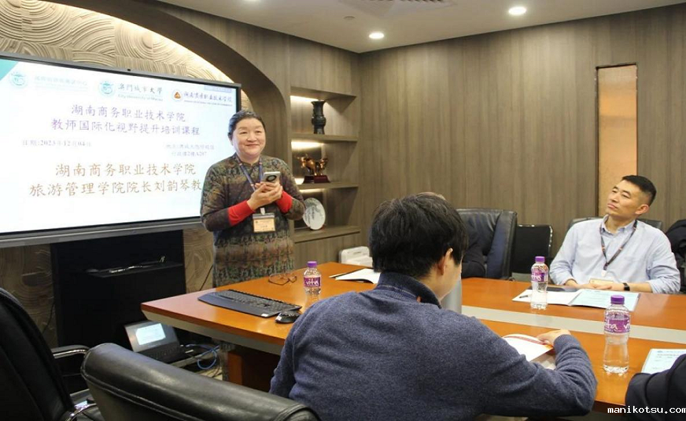 在开班仪式上,澳门城市大学国际培训与测试中心的梁老师对我院教师团的到访表示了热情的欢迎,并介绍了澳门城市大学的历史与发展情况。学院旅游管理学院院长刘韵琴作为参训代表致辞,对澳门城市大学国际培训与测试中心工作人员的热情接待表达谢意,并介绍了学院的基本情况和此行的目的。双方期待通过此次培训研修,加深两校教学与管理人员之间的交流,也助推湖湘与澳门高校之间的教育合作。