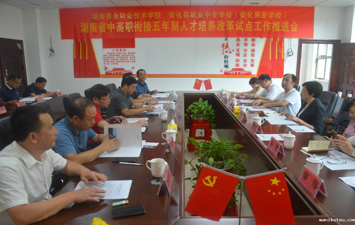 (通讯员:欧阳梅 唐柳荷)9月14-15日,湖南省政协常委、湖南商务职院院长李定珍,带领发展规划与合作交流处处长唐柳荷、教务处处长毛政珍、茶学院院长易能、经济贸易学院党总支书记谢虎军及茶学院教师团队来到安化县职业中专学校(安化黑茶学校)开展中高职衔接五年制大专人才培养工作考察调研。安化县人民政府党组成员、副县长伍亮,安化县人民政府副县长谢疆,安化县人民政府党组成员莫超,安化县教育局党组书记、局长刘唐业,以及安化县职业中专学校(安化黑茶学校)校长刘迪凡携全体校领导接待了我校到访人员。