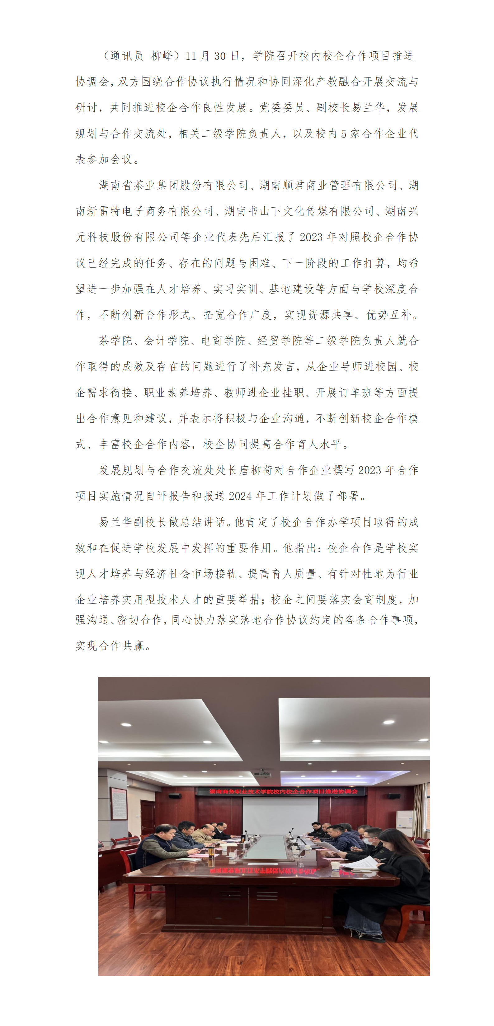 深化产教融合共促合作共赢-学院召开校企合作项目推进协调会