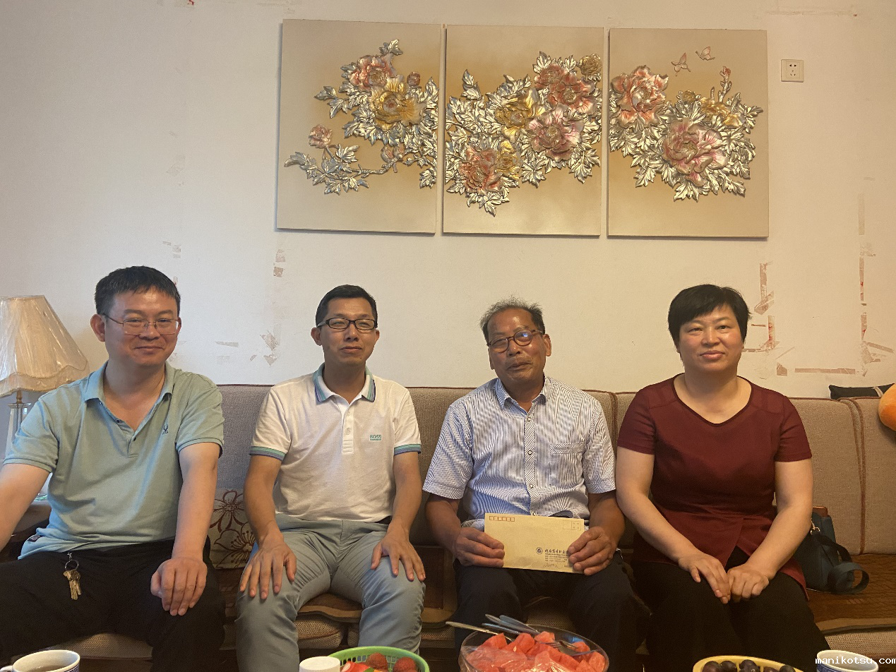 “七一”前夕,学院党委书记周忠新、副院长廖良林、党委委员、人事处处长刘谦带领组织人事处、工会相关工作人员走访慰问了学院老党员,为不方便参加“光荣在党50年纪念章颁发仪式”的老党员送上纪念章,向他们转达党中央的亲切关怀,并代表学院向他们致以亲切问候。