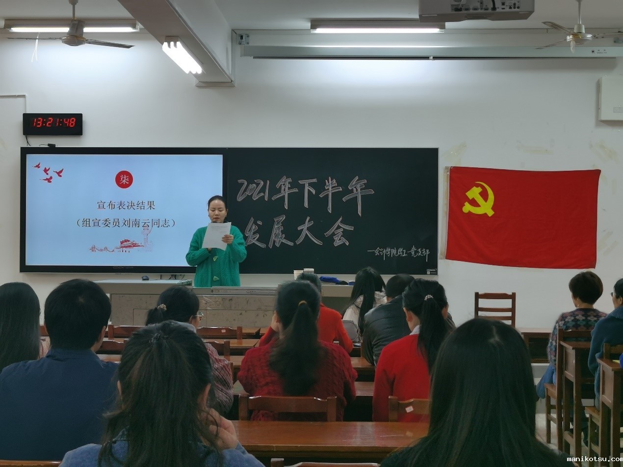 汇报结束,组宣委员刘南云同志宣布表决结果: 16名发展对象,支部正式党员赞成票8票,反对票0票,弃权票0票。根据表决结果,经支部大会研究,同意将邵佳怡等16名同志确认为预备党员,并报上级党委备案。
