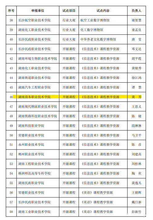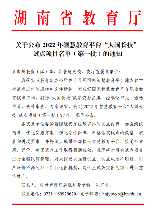 基础课部《信息技术素养》课程立项 2022 “大国长技" 试点项目名单(第一批)
