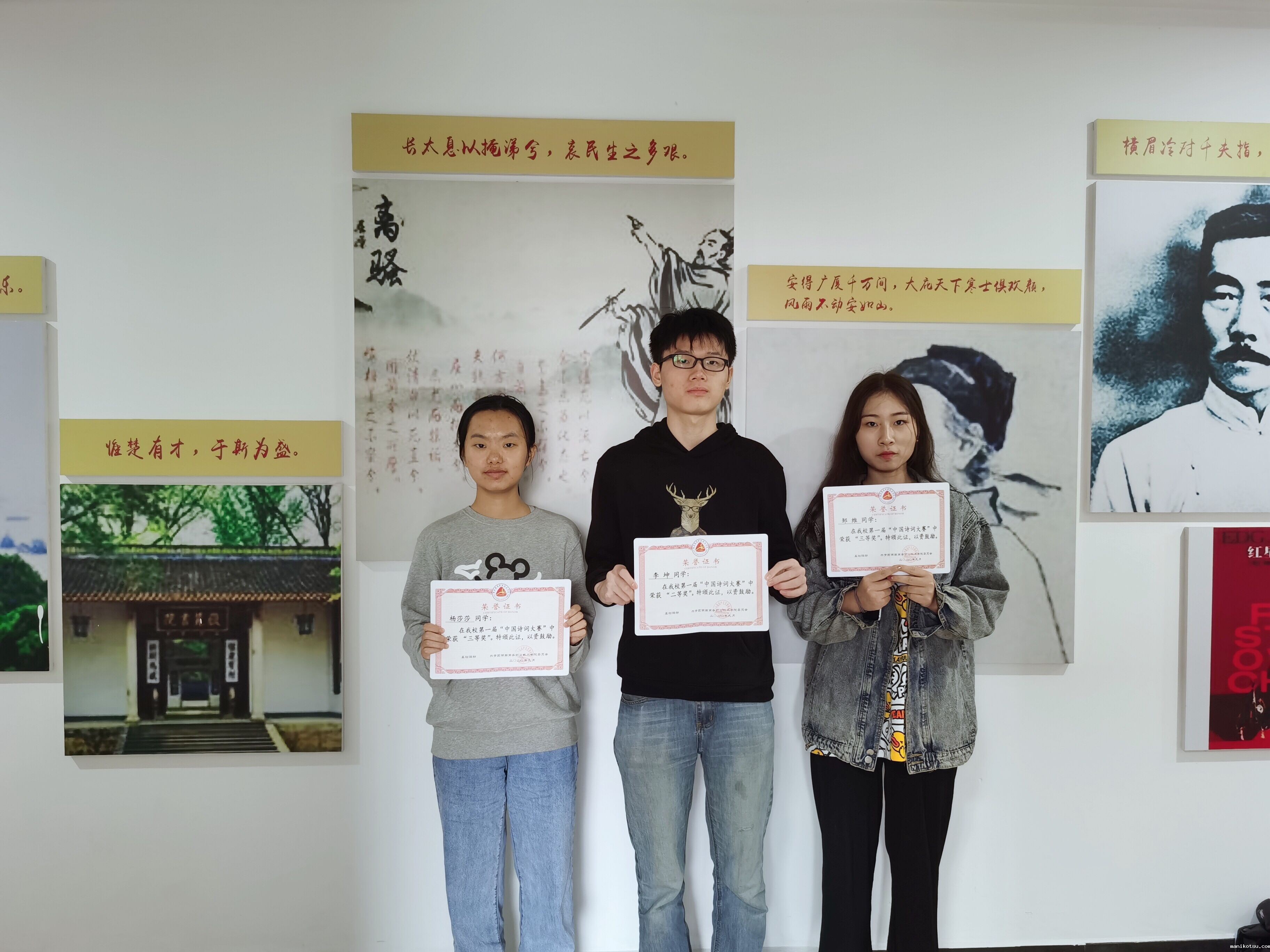 本次比赛参照中央电视台诗词大赛的方式,以“看字选诗”、“飞花令”等多种形式全面考核学生对中国传统诗词的掌握情况。通过初评、复评和集体评议三轮评审,评选出了一等奖1名,二等奖2名,三等奖4名。