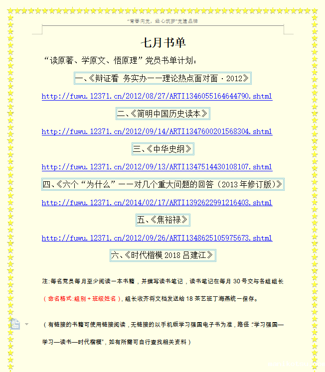 (通讯员 陈灿)2020年7月,经济贸易学院学工党支部组织全体党员和18、19级入党积极分子开展第四期“读原著、学原文、悟原理”党员书单计划活动,号召学生党员和入党积极分子培养“爱读书,读好书,善读书”的良好习惯。