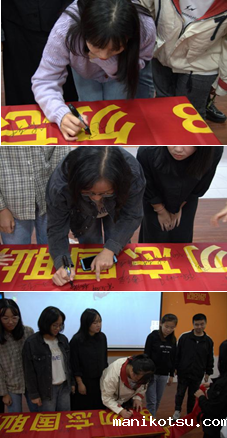党员同志们积极在“勿忘国耻,牢记历史使命”红色横幅上签名