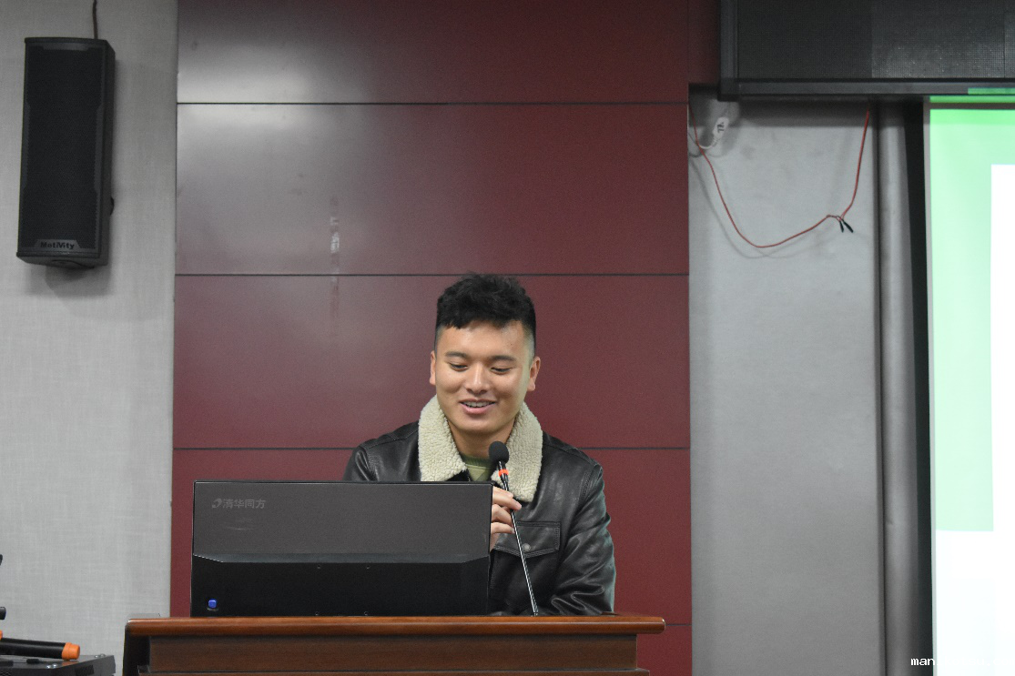 活动伊始,17级物流管理专业毕业生党员银登上台分享了自己的备考经历和经验。首先他介绍了如何研究考试大纲和考试要求。物流专业专升本考试科目共有三门,分别是管理学、英语与本科专业。每年三月的时候招生学校会出台考纲。大家需要好好研究考纲,从考纲出发,同时做一些历年的真题和模拟题,对考题的把握和预测才能做到精准狠。其次,他还无私地向大家分发了自己备考期间准备的大量笔记和总结资料。最后,他回答了广大毕业生面临的一个普遍性问题——“到底是抓紧时间出去工作呢?还是继续深造专升本。”他用家人的 “经后可以用一辈子来工作,但是读书的时光是不能用一辈子来弥补的!”这句话和在座的同学共勉。
