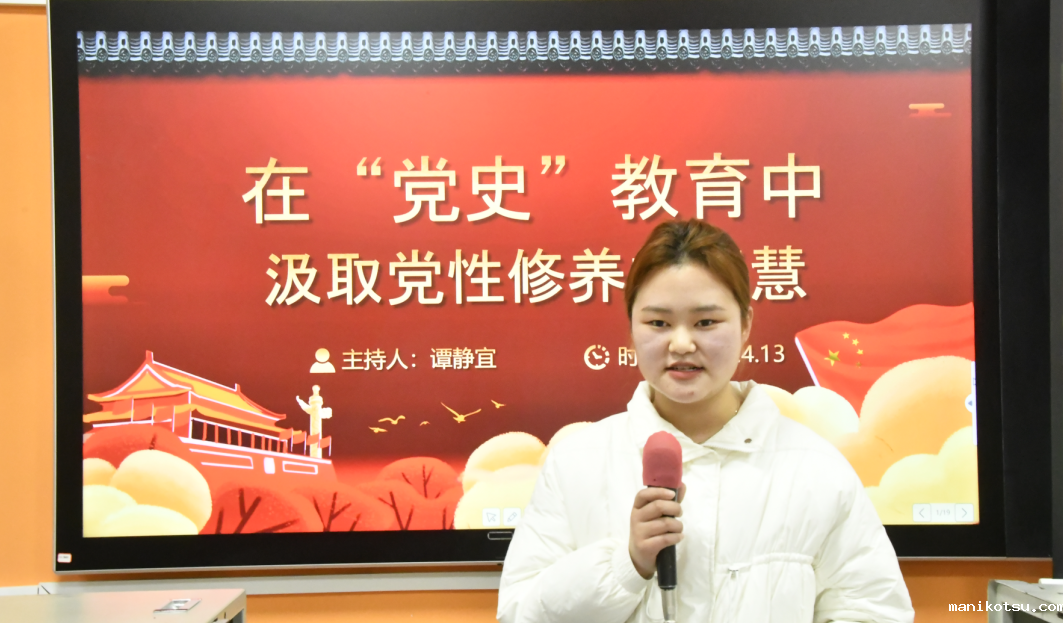 (通讯员 陈俐安)为了让同志们更深入地了解党史,从党史中汲取智慧,汇聚成前行的力量,2021年4月13日14:30,经济贸易学院学工党支部在第二教学楼101教室开展“在‘党史’教育中,汲取党性修养智慧”主题党日活动。主持人为“青春向党”先锋营第一小组谭静宜同志,经济贸易学院学工党支部全体党员、入党积极分子参加此次活动。