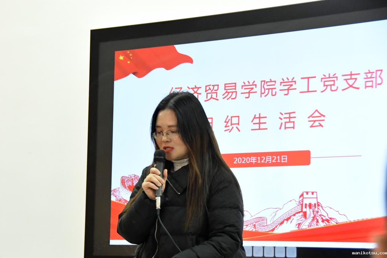 (通讯员 邓亚平)为促进党员的自我成长,保持党员先进性,2020年12月21日,经济贸易学院学工党支部组织全体党员在二教101教室(经济贸易学院分党校)召开了2020年度专题组织生活会,本次大会由党支部书记方红梅同志主持。