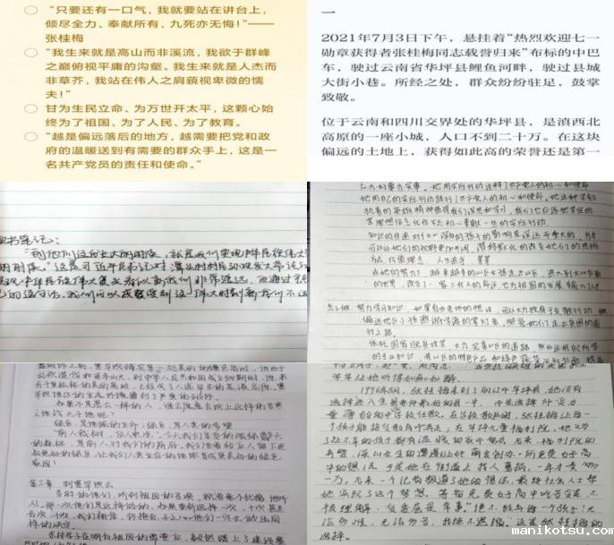 入党积极分子徐彭怡在阅读了《美丽塞罕坝》一书后写到:“塞罕坝人志存高远,积极响应国家号召,用几代人的热血造就了沙漠变绿林的传奇。在文中我看见了他们对国家的热爱与责任,对自己人生价值的追求,对中国精神的真实写照。作为新时代的青年学子,我认为我们应树立远大理想,扎根于祖国需要的地方。如今我国正实施乡村振兴战略,而农村教育是乡村振兴必不可少的一环。我希望在以后我能够当一名乡村教师,在学习与工作中时刻保持初心,为祖国的发展贡献出自己的一份力量。”