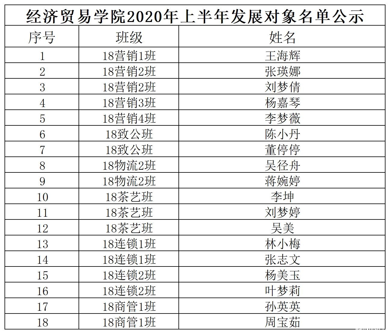 2020年5月21日,经支部委员会研究,报上级党委备案同意,将王海辉等18名同志列为发展对象。报据发展党员工作有关要求,现将其有关情况予以公示。