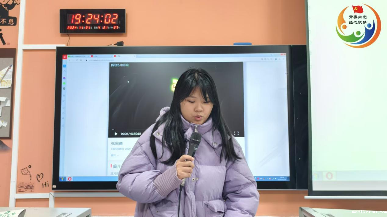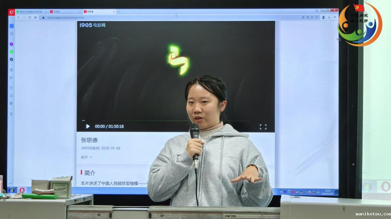 (通讯员 周雨萱)毛泽东同志曾高度赞誉张思德同志:“当一个人的生命与人民的命运紧密相连时,生命将焕发无限的光彩。”2024年11月21日晚7时,经济贸易学院学工党支部于二教101教室(经济贸易学院分党校)组织开展“学习优秀党员张思德” 观影活动。此次活动主持人为预备党员22级市场营销2班戴娟琳,经济贸易学院学工党支部全体党员、入党积极分子参加此次活动。
