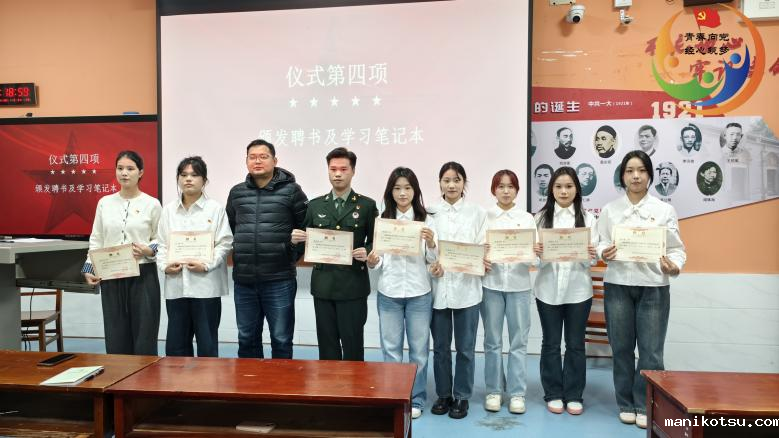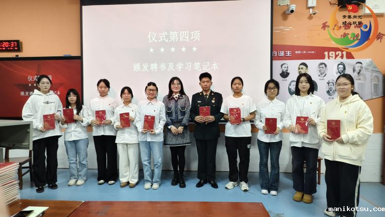 仪式第四项,颁发聘书及学习记录本。邹磊老师和方红梅老师分别为“第四期‘青春向党’入党积极分子先锋营的管理干部颁发聘书,为第五期“青春向党”入党积极分子先锋营的营员颁发学习笔记本,激励大家继续努力,再创佳绩。