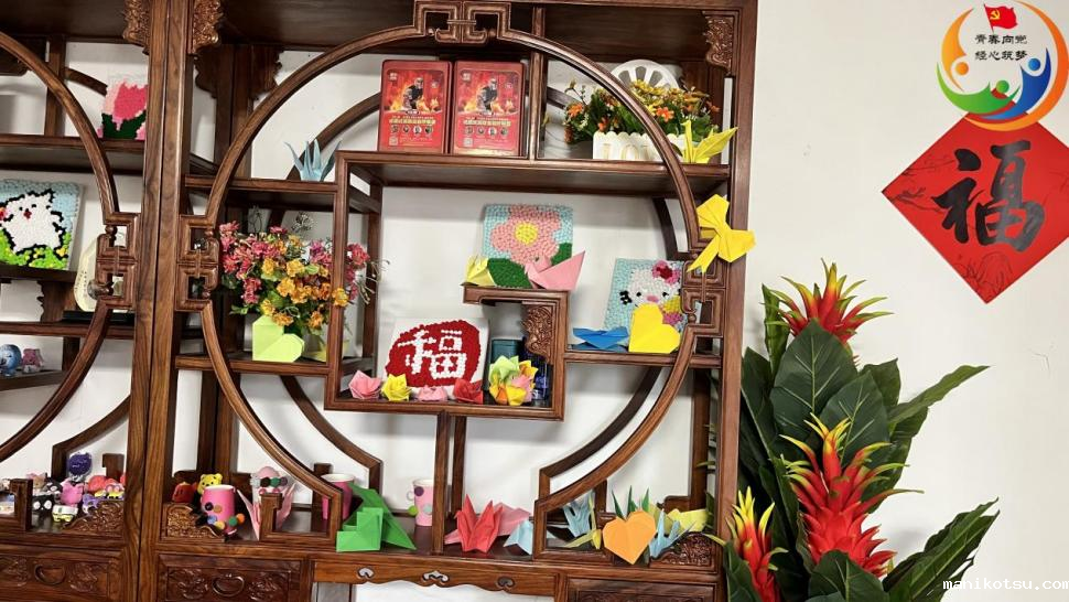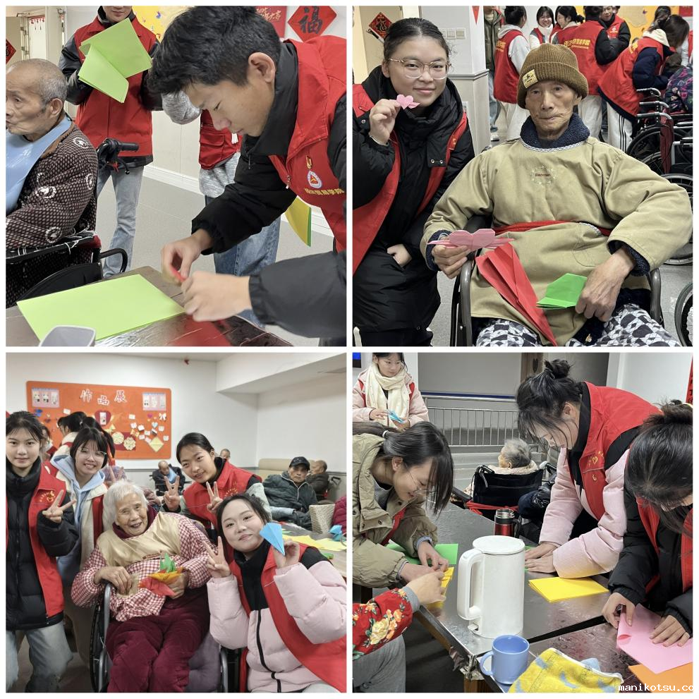 随后,迎来了手工制作环节。志愿者们围在老人们身边,手把手地教老人们折叠。老人们尽管手法略显生疏,但在志愿者的鼓励与协助下,创作出了一件件精美的手工作品:蝴蝶结、小兔子、玫瑰花……刘奶奶看着自己亲手完成的作品笑得格外开心,她感慨道:“我像你们这么大的时候会折的花样可多了!现在手虽然不灵活了,但还是喜欢玩这么些玩意。”志愿者们也被老人们的宝贵的笑容中收获了成就感。