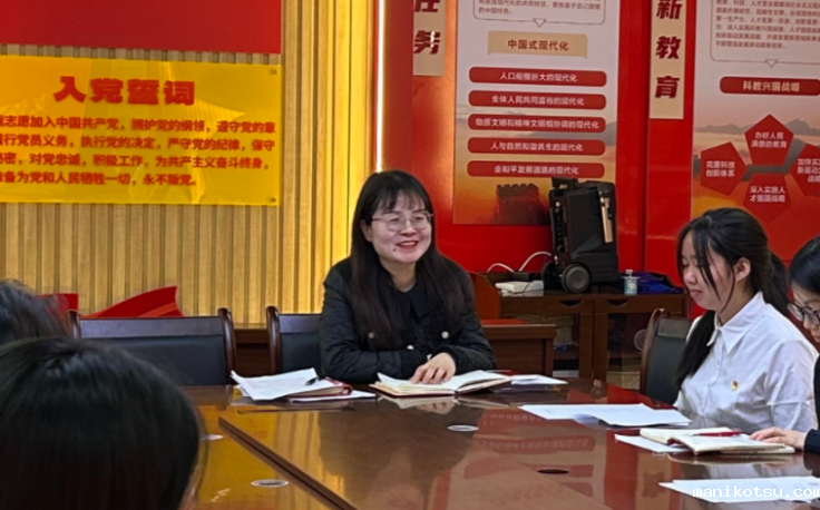 最后,党支部书记方红梅为预备党员佩戴党徽,勉励同学们要时刻牢记自己是一名中国共产党党员,坚持为实现中华民族伟大复兴的中国梦而努力奋斗,让党徽在青春的征程中闪耀光芒。她强调:“希望你们能够珍惜来之不易的机会,加强理论学习,不断提高政治素养,积极参与社会实践和志愿服务活动,在学习和生活中发挥模范带头作用。”