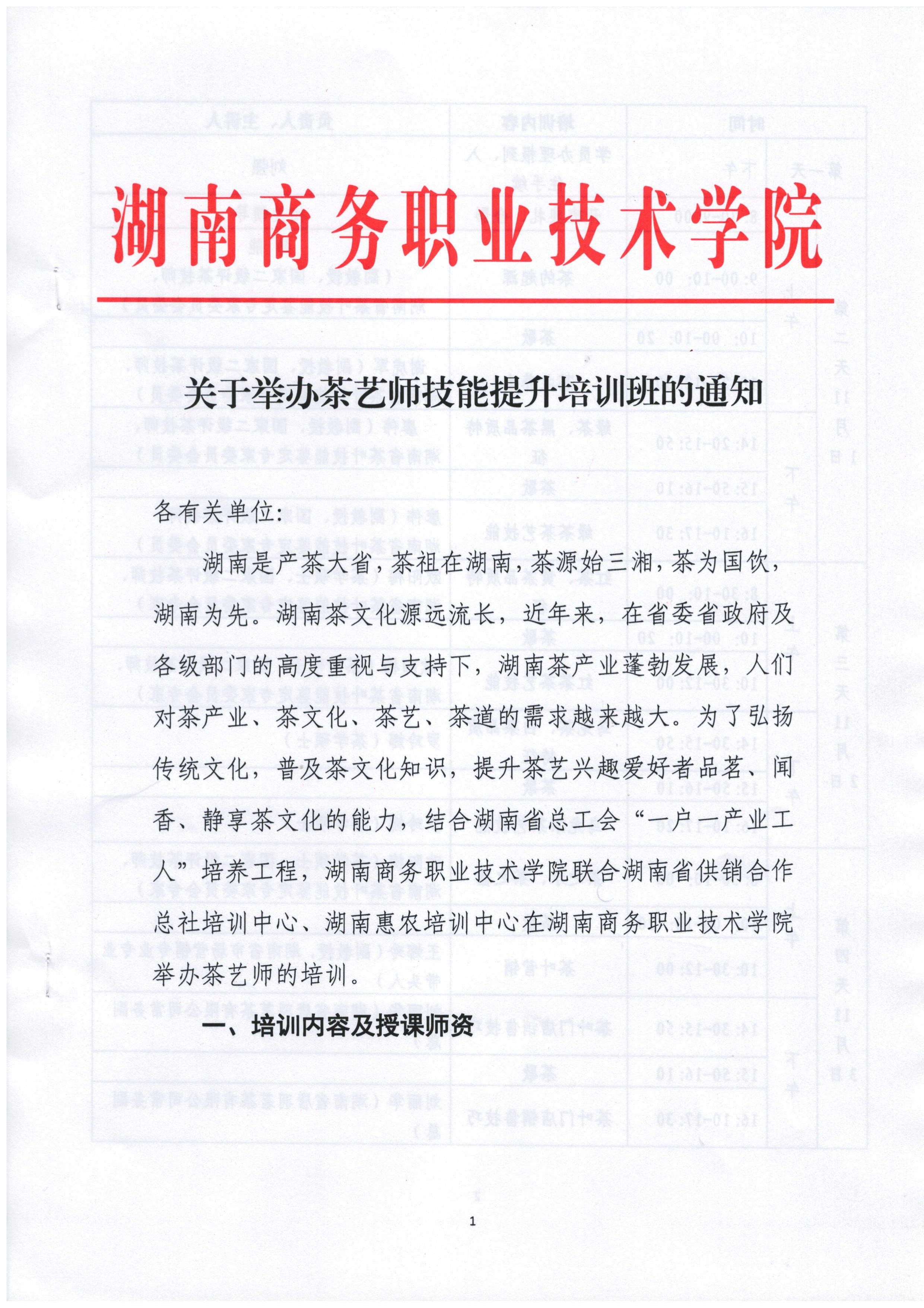 附表1:茶艺师技能提升培训及考证鉴定意向表