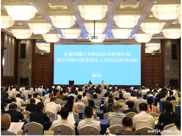 (通讯员 谷永林)2021年9月16日由湖南省乡村振兴局主办的雨露计划职业学历教育补助暨乡村振兴致富带头人业务培训班在长沙湖南宾馆开班。来自全省各市州、县市区乡村振兴局分管负责人、业务骨干等共计340余人参加培训。我院作为中标培训基地之一,学院院长李定珍、党委委员刘谦、继续教育学院院长陈斌、继续教育学院副院长石元珍参加了此次培训班。