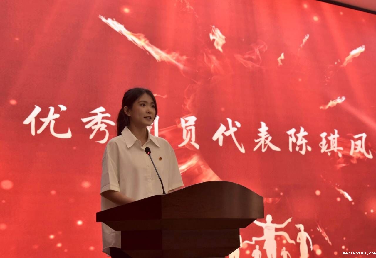 大会第五项,优秀团员代表陈琪凤发言。她指出我们作为当代青年要有理想、有抱负、有作为,要充分发扬和传承五四精神,积极承担时代使命,并呼吁我院学子应当继续奋勇争先,不负青春,树立理想,努力成为堪负民族复兴重任的新时代接班人。