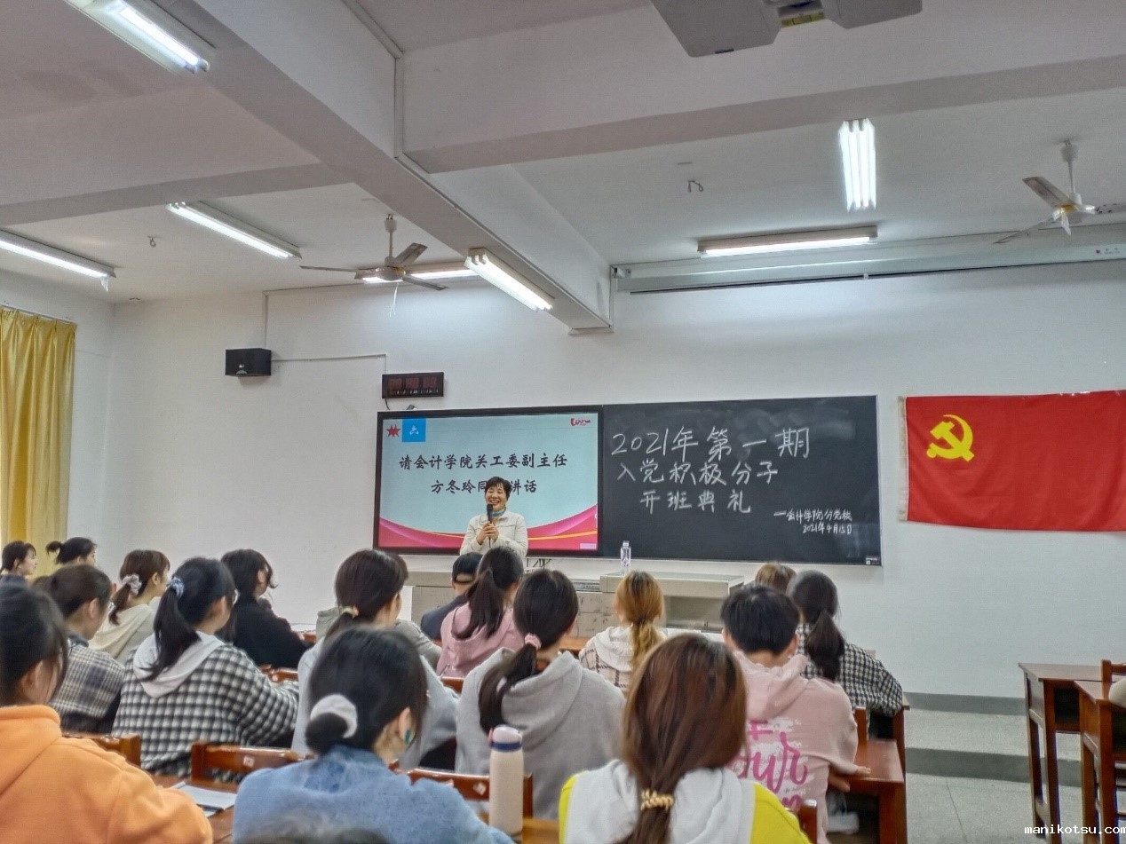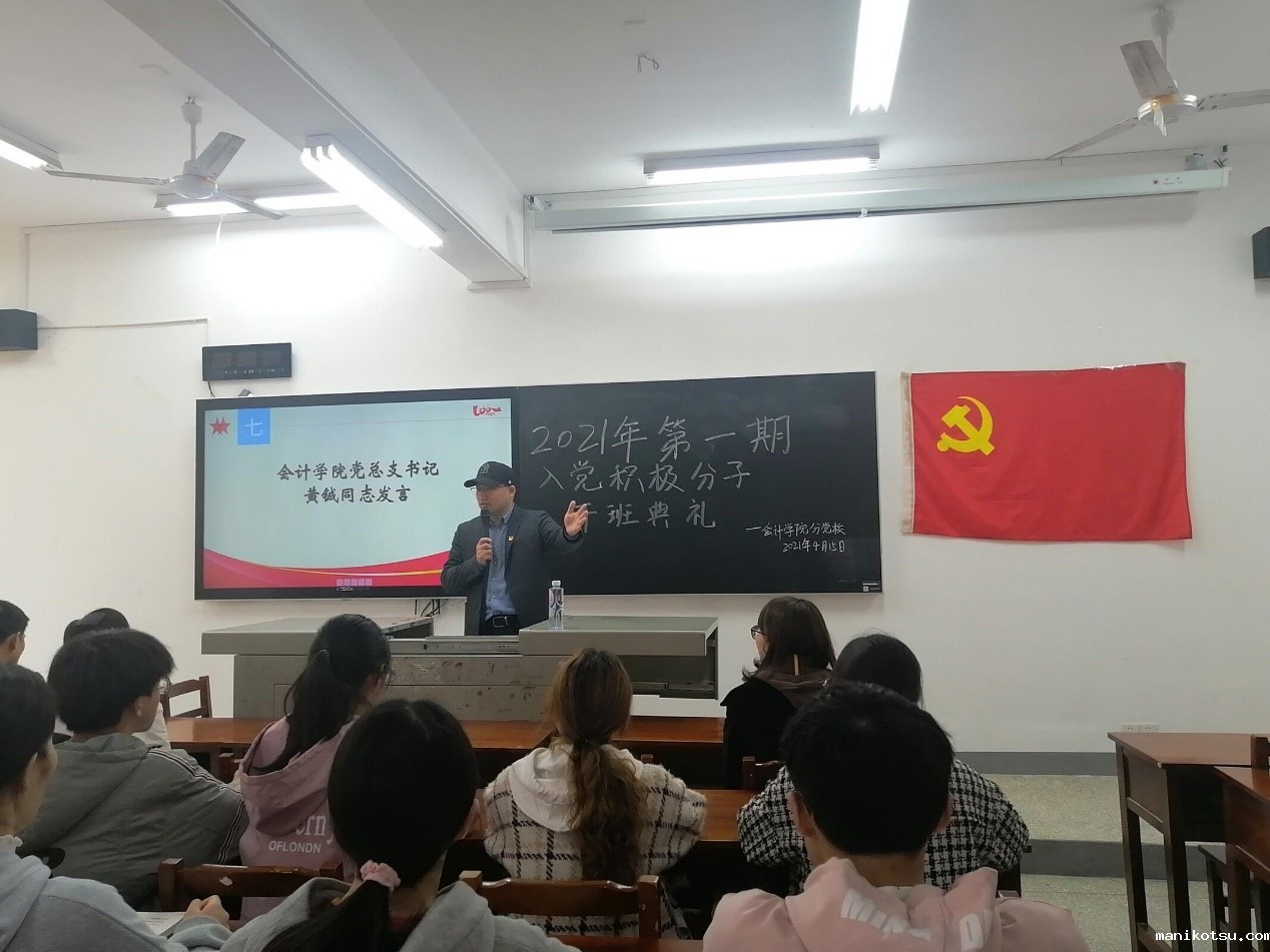 会计学院分党校于2021年4月15日12:10在二教301举行了会计学院2021年第一期入党积极分子培训班开班典礼。培训班旨在加深学员对党的认识,端正入党动机,坚定入党决心,从思想和欣慰两个方面严格要求自己,争取早日加入党组织。来自19、20级各 团支部共127位入党积极分子参加本期培训班,将进行为期21天的集中学习。