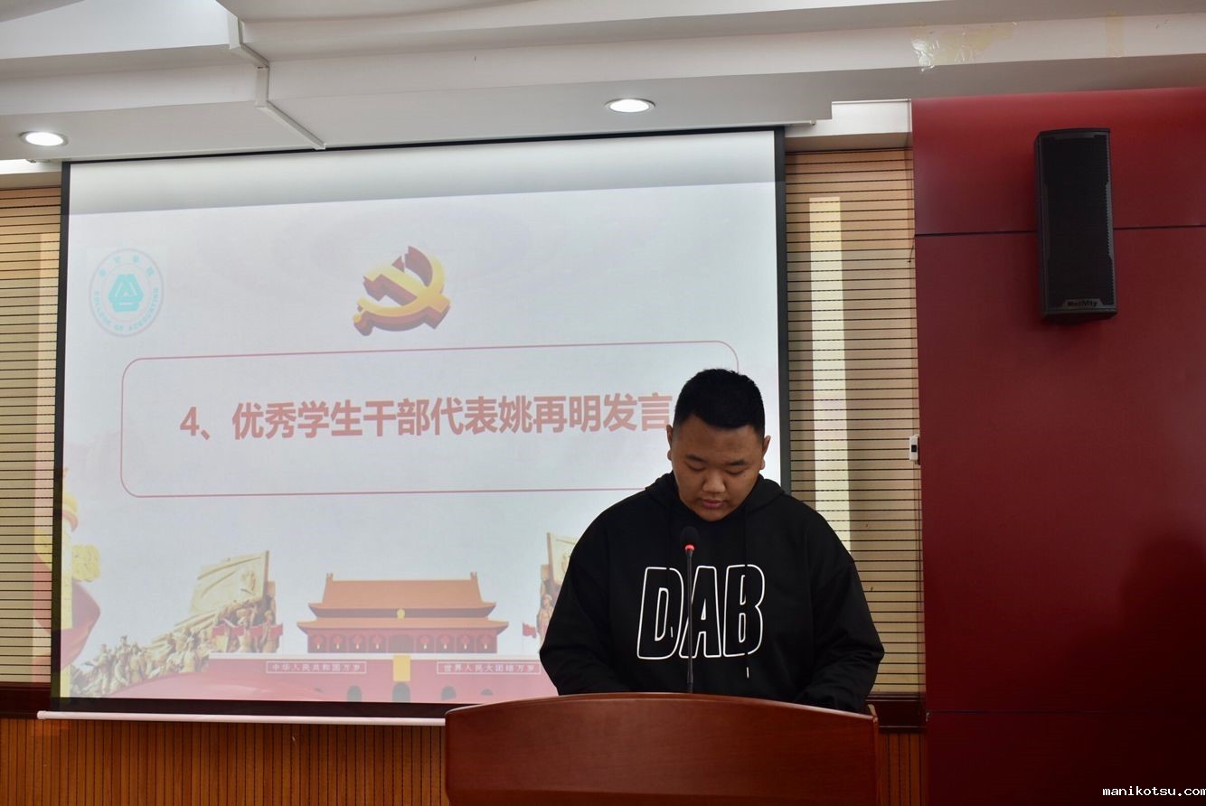 黄铖书记首先深度阐述了“德”的本质含义,认为“德”是大学生的品行品质、行为准则和道德规范,并指出,“立德树人”是我们应当遵守的行为准则。同时,他提出几点希望:一是坚定理想信念,励志为成人、成才、成功打下夯实的专业基础;二是希望同学们对标榜样、争做榜样,汲取正能量,营造良好的互促互进的学习氛围;三是希望获奖的同学戒骄戒躁,继续努力,以实际行动担负起这一份荣誉。