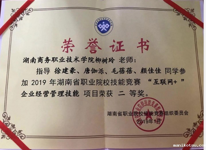 本网讯2018年12月22日,由我校会计学院17级会计2班颜佳佳、17级会计11班毛蓓蓓、18级财务管理4班唐伽泺、18级投资与理财2班徐建豪组成的参赛团队在2019年湖南省职业院校技能竞赛“互联网+企业经营管理技能”项目中以优异的成绩荣获二等奖。