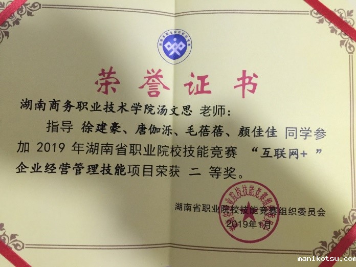 我院学生获得2019年湖南省职业院校技能竞赛“互联网+企业经营管理技能”项目比赛二等奖