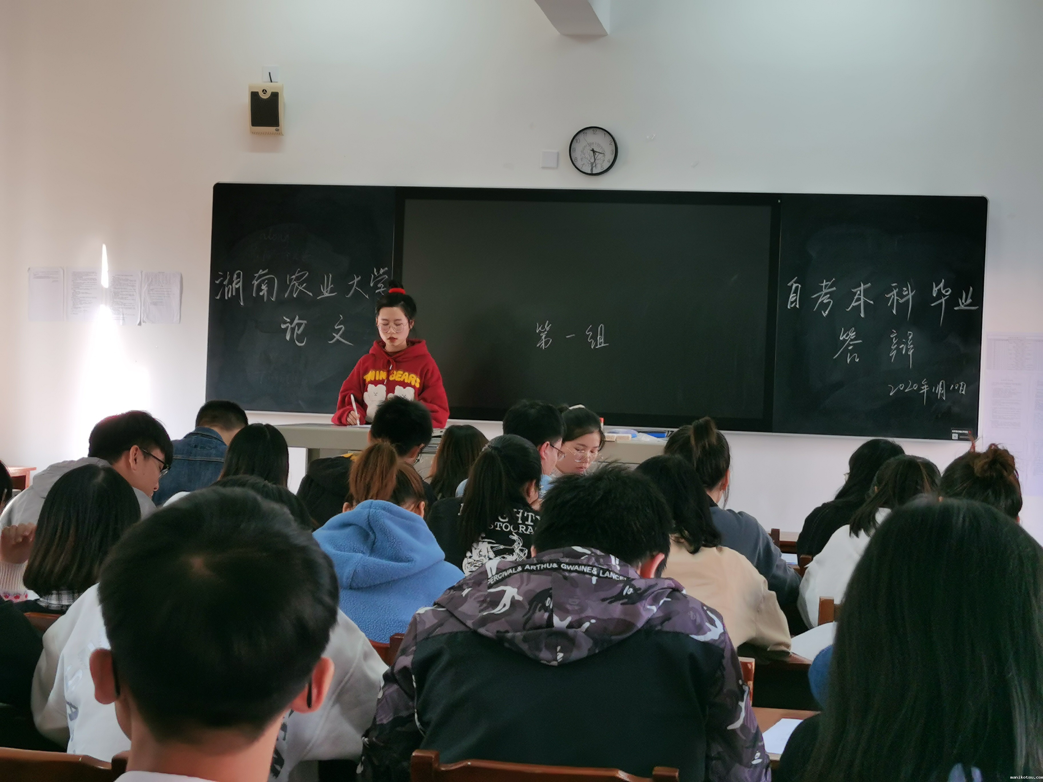 为了进一步考查和验证毕业论文作者对所著论文的认识程度和当场论证论题的能力,我院于2020年11月10日下午14:00在第二教学楼开展了农大自考论文答辩。本次答辩在二教302、303、304、402、403、404、405、406、407、408、409教室同时展开,会计学院560名学生分为12个组参加论文答辩,论文答辩组老师由湖南农业大学的自考办主任刘琳、招生办主任王丹与33名我院论文指导老师组成,18统会2班张维琛、周陈承、18统会4班唐湘为主要负责人。
