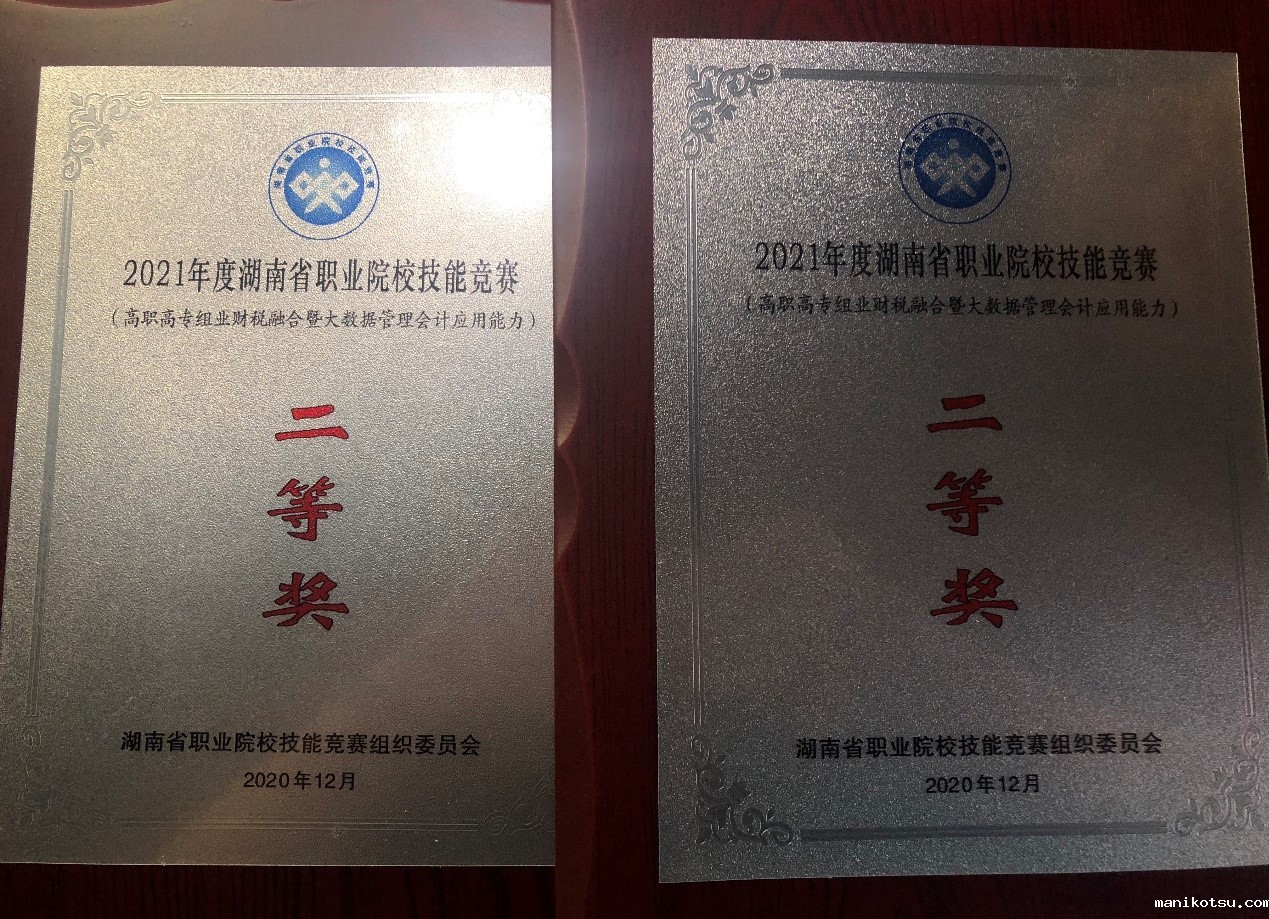 2020年12月,在2021年湖南省职业院校技能竞赛(业财税管理会计)赛项中,我院共派出两队参赛,均荣获二等奖。分别为廖妍姣、陈佳钰、薛之骞、龚嫄老师指导的,由会计学院18统会1班袁颀、 18财管1班曾彩霞、18财管3班袁沛、19会计8班刘浩波组成的参赛团队;由薛之骞、龚嫄老师指导的,由会计学19财管2班李欣霞、19会计4班邓娆、18会计2班何莉、18财管4班李恩惠组成的参赛团队。