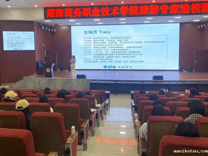 为使我院旅游专业学生进一步了解旅游行业的发展,成为一名专业的旅行定制师,5月16日和17日上午9点,旅游管理学院在产教融合楼报告厅开展了“旅游专家进校园”活动。本次为同学们分析旅游行业未来发展趋势的专家有湖南新康辉国际旅行社导游部经理浦艳、零时差定制旅游公司总经理左瑞芳、湖南海外旅行社副总经理黄彬和办公室主任龙柳、享梦游公司的创始人彭士平及探店运营总监钟凯。