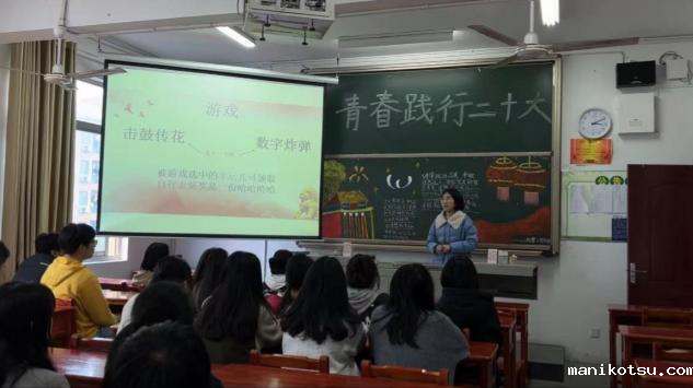 此次班会全班同学围绕“爱国、团结、奋斗、科学、互助”等关键词,分享践行党的二十大精神,励志成为新时代好青年。班会共有四个环节:一是主持人带领同学们学习二十大精神,解读中国共产党人的精神特质,重点突出自信自强、守正创新,踔厉奋发、勇毅前行的伟大建党精神;二是观看中国女排征战赛场的视频,以团结友爱、坚强拼搏的体育精神,强调“青春和梦想”的重要性;三是游戏环节,通过“击鼓传花、数字炸弹”等小游戏,让同学们明白集体协作、团结共赢的道理;四是辅导员总结发言,夏瑞霞老师强调,青年学生应以钱学森、邓稼先等先辈为榜样,树立远大理想,“为万世开太平,为往圣继绝学”,描绘绚丽多姿的青春底色。