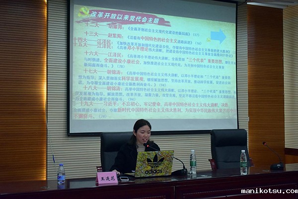王连花副教授首先与在座师生分享了听取十九大报告后的感受:一是振奋人心,觉得我们党是充满希望的党,我们国家是最有前途和希望的国家。二是充满激情,使人有了撸起袖子加油干的动力。三是要以习近平总书记为榜样。习近平总书记干在实处、走在前列的工作作风和永远心系人民群众的初心让在场师生感慨万分。